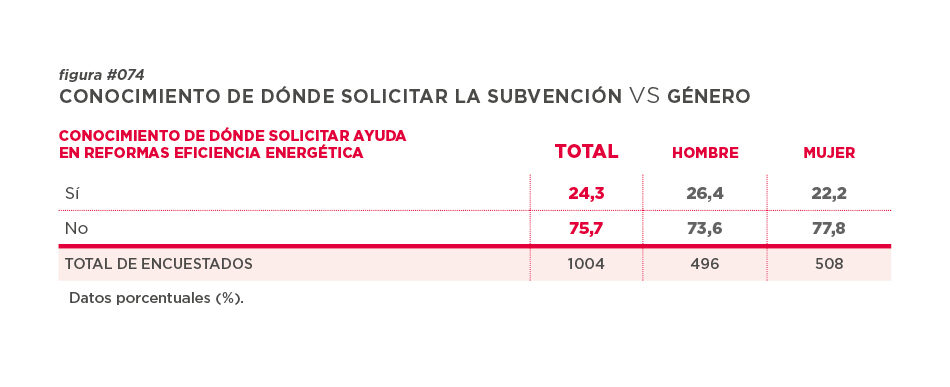 Prácticamente 1 de cada 4 personas conoce dónde acudir para solicitar este tipo de ayudas para la mejora energética de la vivienda.