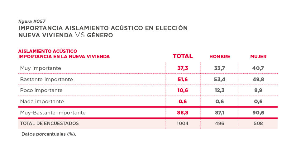 El 88,9% de los encuestados, considera el aislamiento acústico “muy o bastante importante” para la elección de una vivienda.