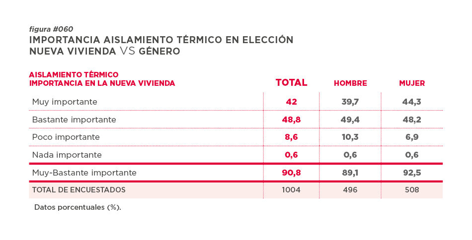 Por otro lado, nos encontramos con un dato realmente significativo para los ciudadanos, ya que el aislamiento térmico es una de las preocupaciones esenciales a la hora de elegir nueva vivienda para el 90,8% de la población.
