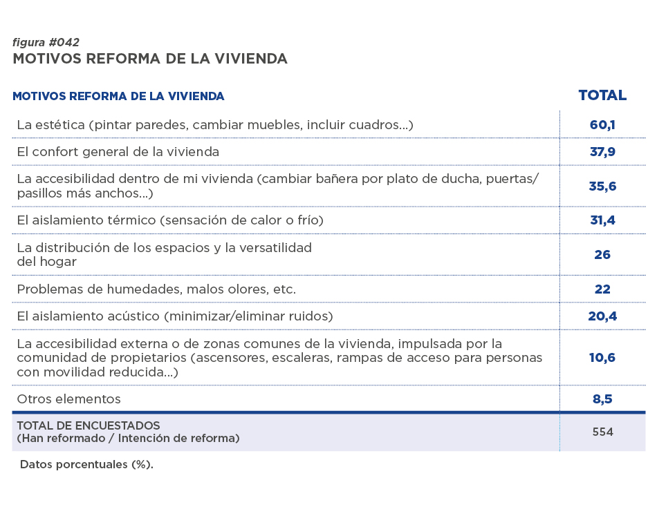 Como primer motivo, con un 60%, aparece la mejora “estética” de la vivienda como la razón principal para decidirse a realizar la reforma de esta.
