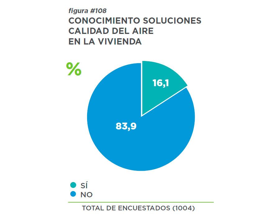 Si bien el 16,1% de la población responde favorablemente no hay una cultura popular amplia sobre cómo asegurar la calidad del aire interior de la vivienda, como demuestra el escaso número de referencias específicas a soluciones para resolver este posible problema.