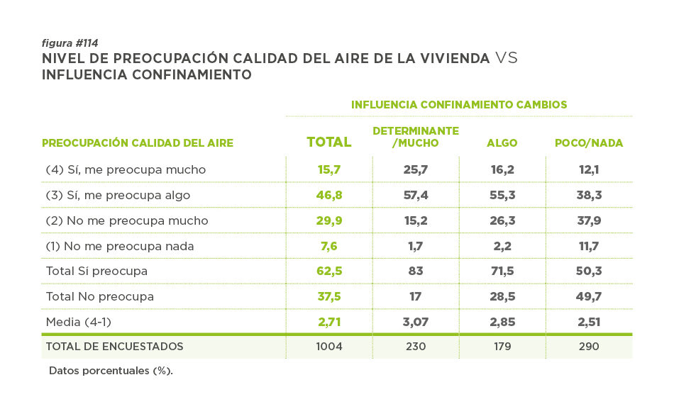 Al considerar la posible relación entre la preocupación por la calidad del aire interior de la vivienda con el confinamiento, son el grupo de personas más influidas por el confinamiento en la decisión de realizar reformas en la vivienda/cambio de casa, las que muestran una mayor preocupación por la