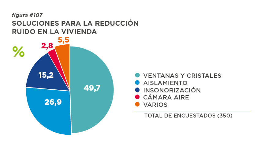 Al comparar con los otros escenarios planteados, respondiendo a las posibles necesidades de aislamiento en el interior de la vivienda para aumentar el confort del hogar, son los problemas relacionados con el aislamiento acústico en los que la población responde con un mayor número de soluciones.