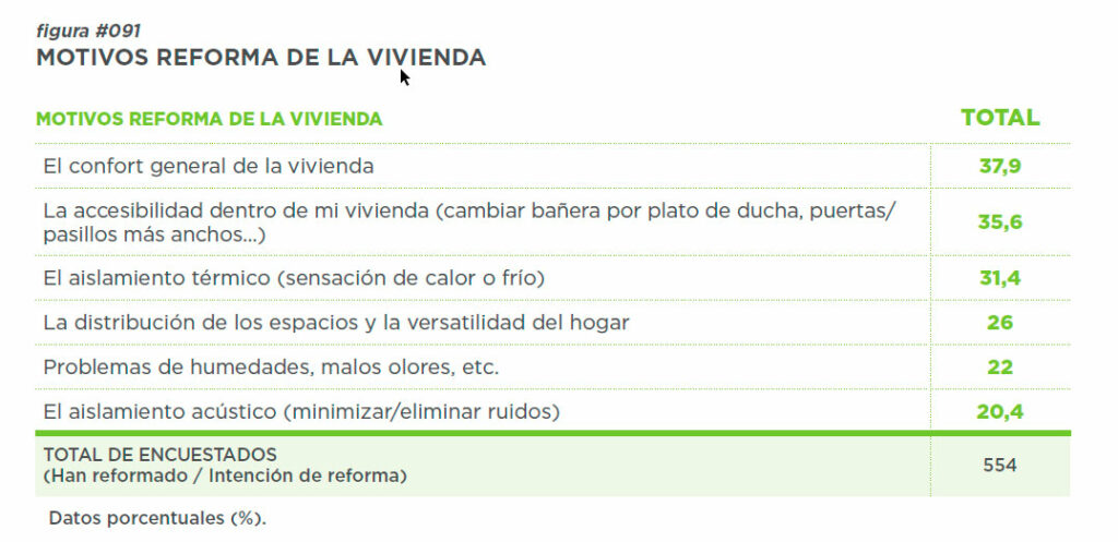 Hemos comprobado que el aislamiento térmico del hogar y la búsqueda de la eficiencia energética en la vivienda están entre los principales objetivos desencadenantes de la realización de reformas y mejoras en el hogar. De forma que el 90,8% de la población considera el aislamiento térmico “Muy o bastante importante”.