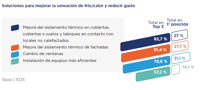 8 de cada 10 van a considerar el aislamiento de cubiertas, techos y tabiques en contacto con locales no calefactados, la mejora del aislamiento término de la fachada y el cambio de ventanas como las soluciones más importantes.